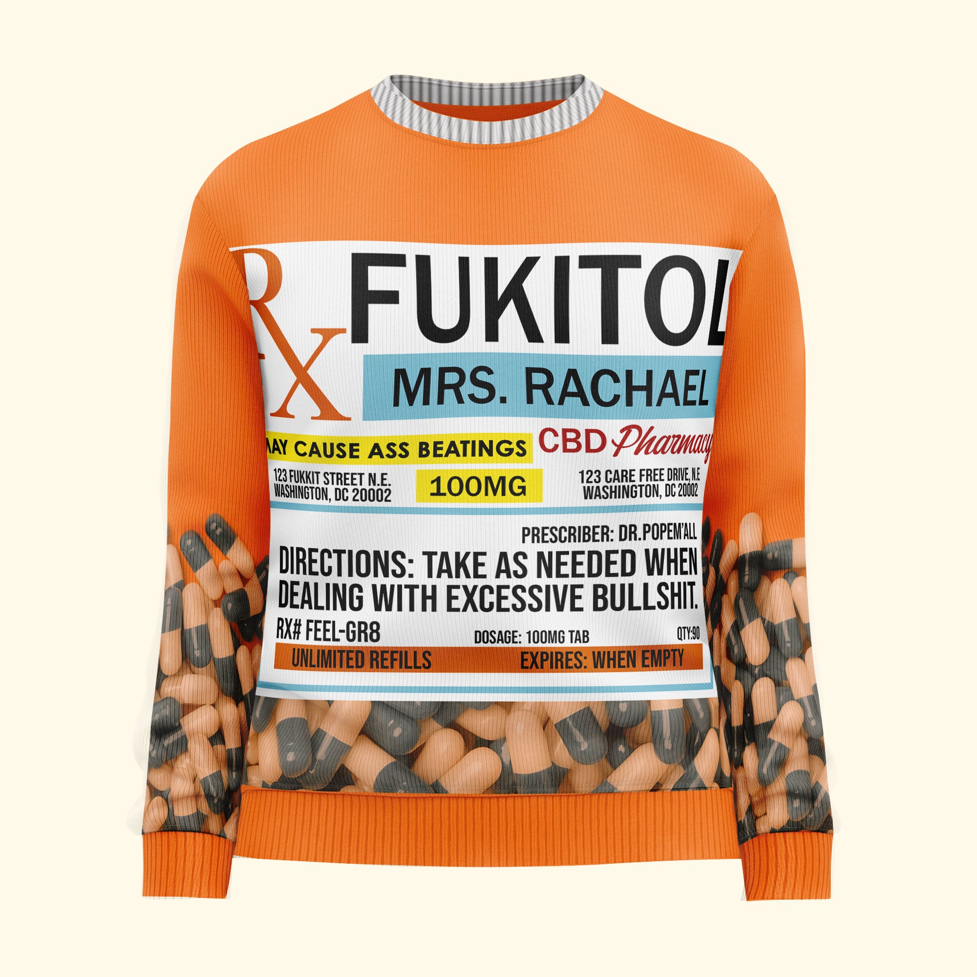 Fukitol Rx Prescription – Funny Gifts For Coworkers, Friends – Personalized Ugly Sweater