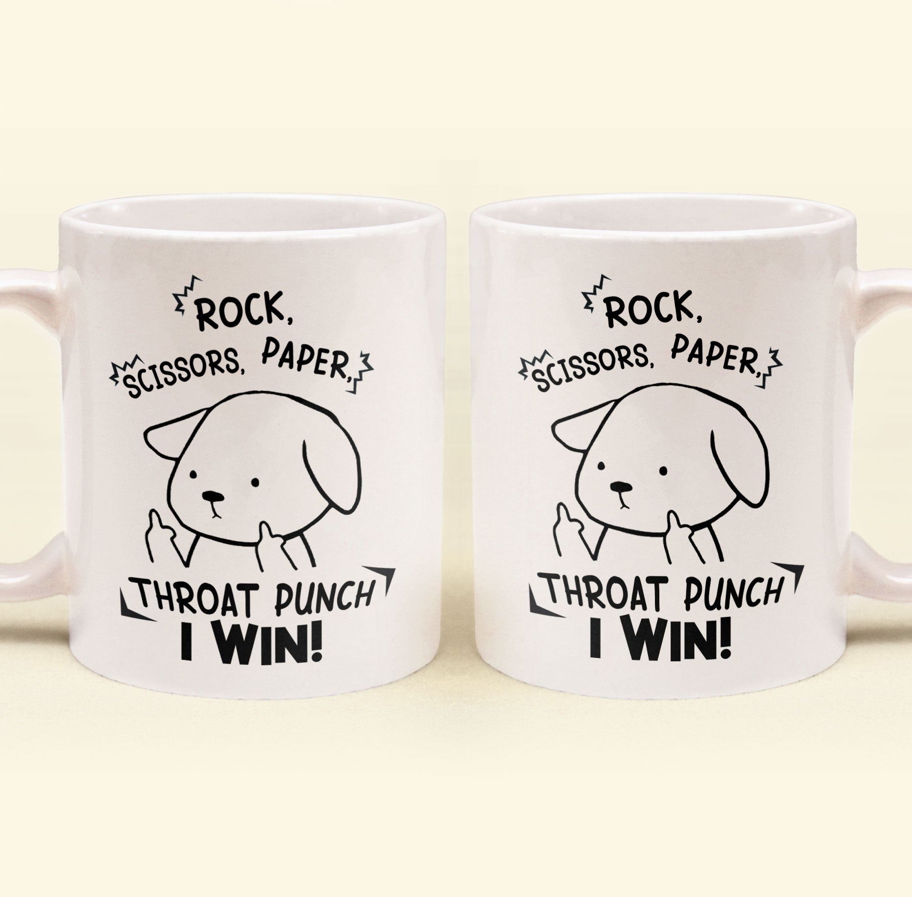 Funny Mug – Rock Paper Scissors Throat Punch I Win – Fun Gifts For Coworker, Friends, Boss – Personalized Mug