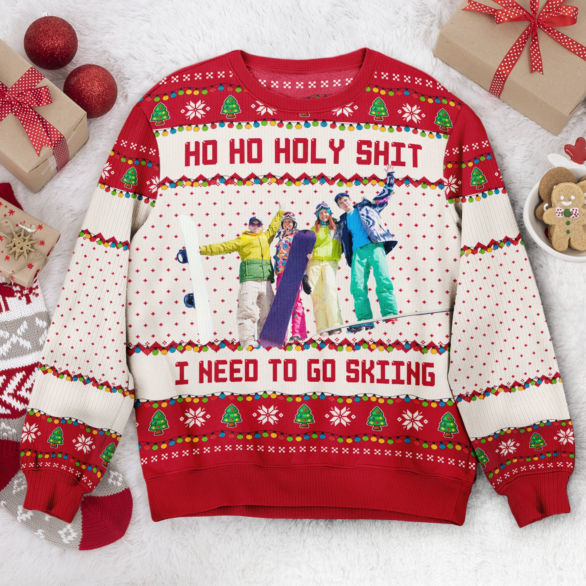 Get ready for the holidays with the “Ho Ho Holy Sh I Need To Go” Personalized Photo Ugly Sweater! Perfect for those who love hunting, fishing, camping, skiing, biking, or any favorite outdoor activities, this funny and customizable sweater is a great addition to your Christmas Ugly Party outfit. Ideal for family members like your husband, son, dad, or grandpa, this sweater makes a hilarious Christmas Gift that will surely bring laughs and smiles. Celebrate the spirit of adventure and outdoor fun this holiday season with this unique and entertaining sweater, perfect for all your festive gatherings!
