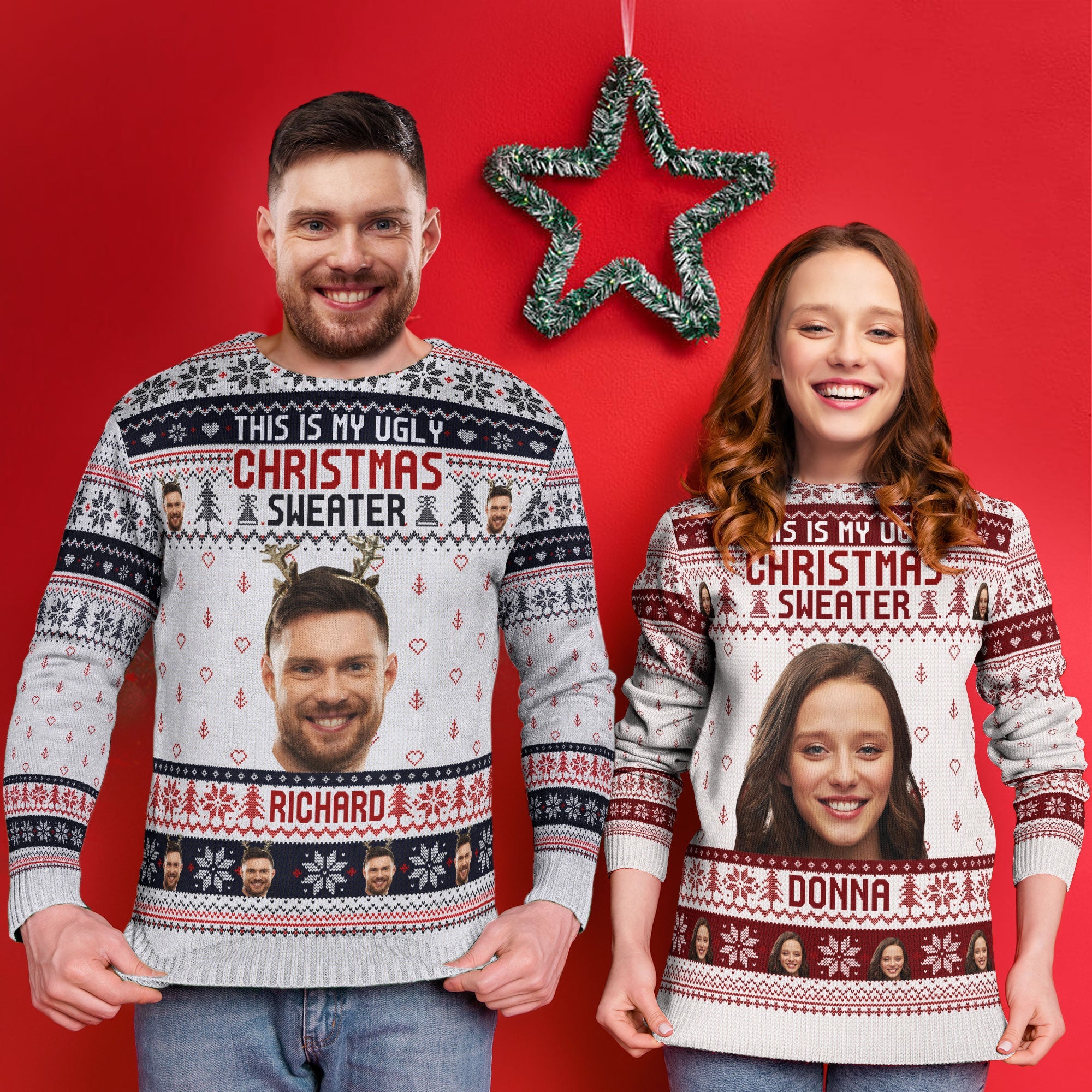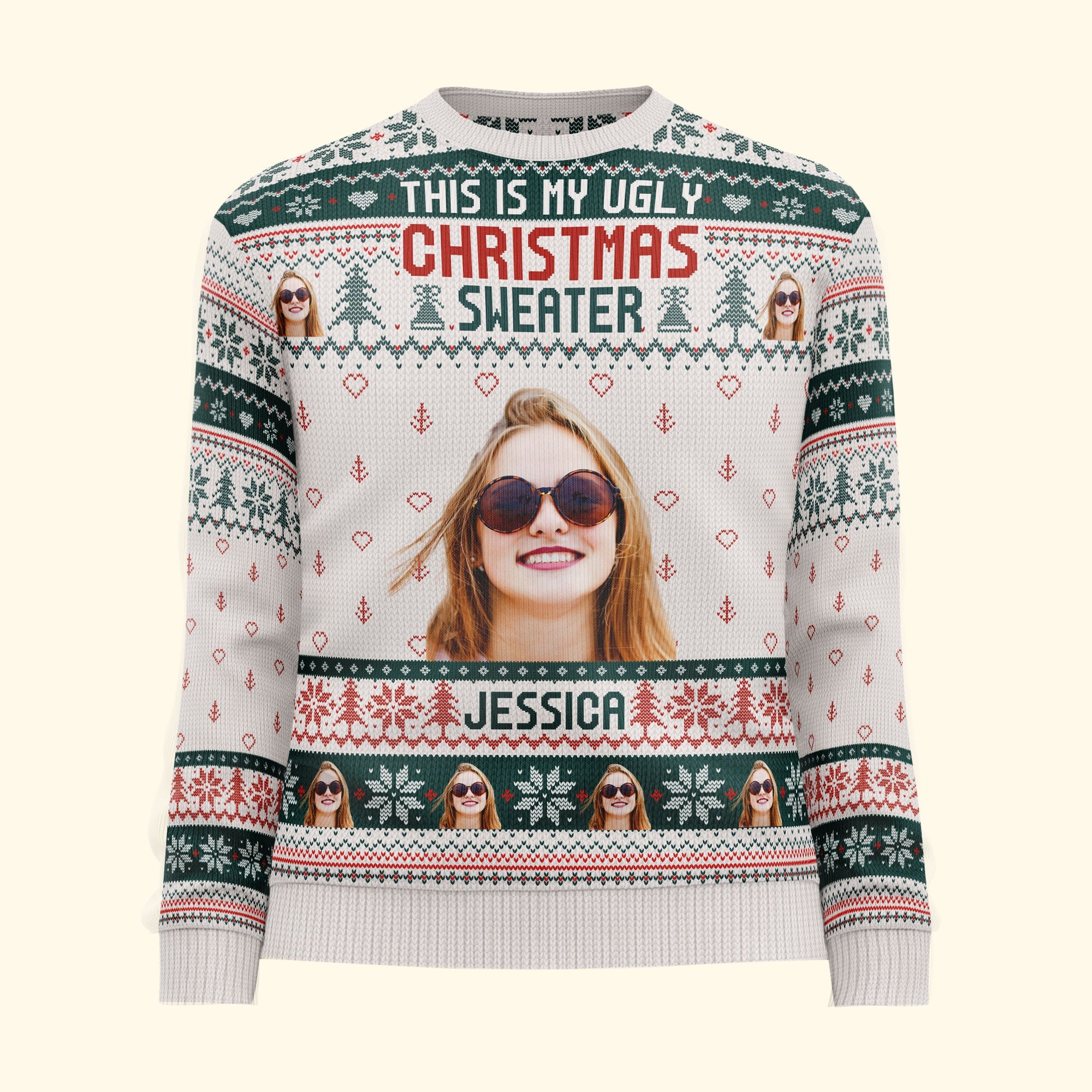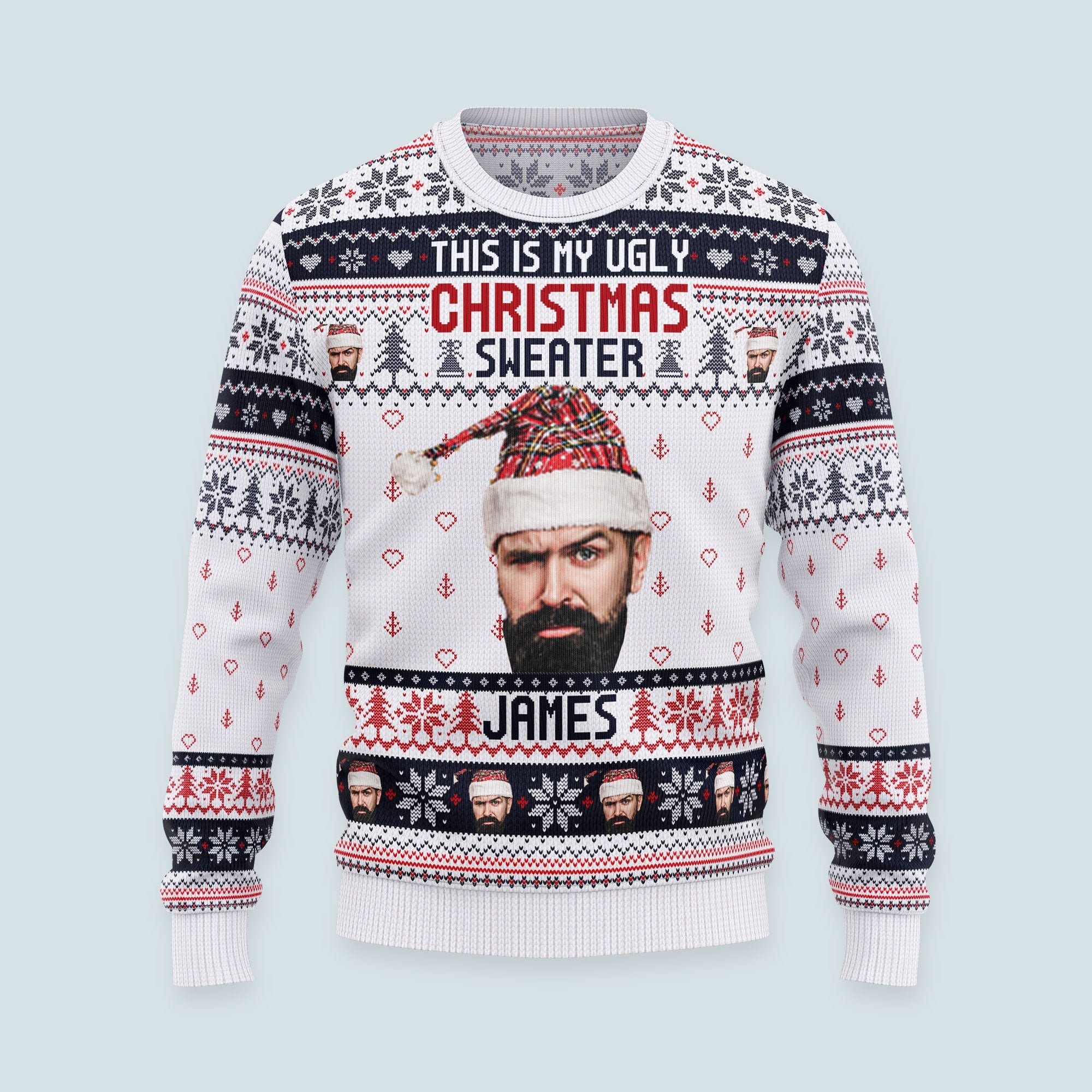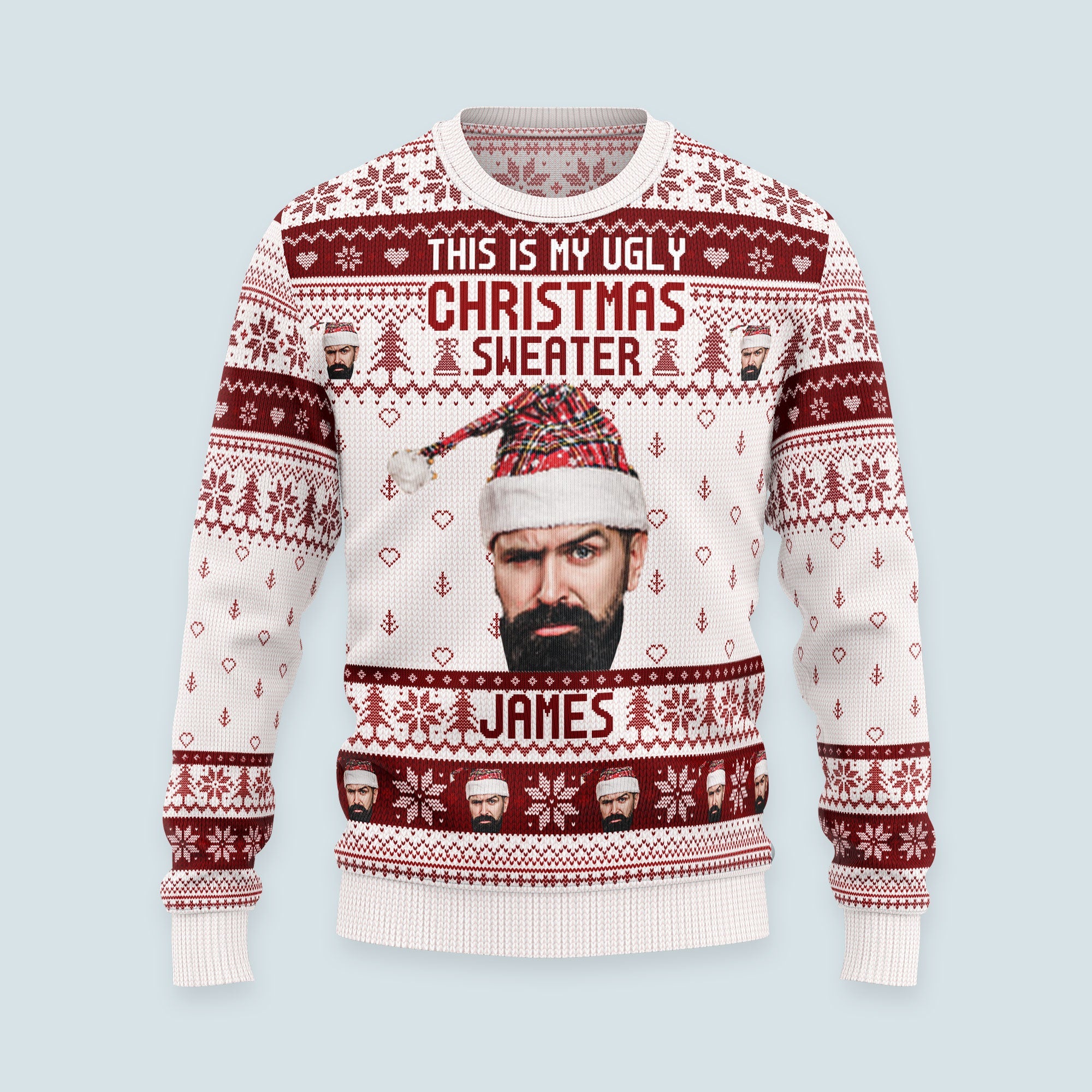 Design your own custom Christmas sweater just for you. Surprise your family by debuting matching custom sweaters during your Christmas morning photos or holiday party. Spread joy throughout the season by wearing your personalized Christmas sweater for grabbing hot cocoa, ice skating, or snapping silly selfies. Make the holidays more holly and jolly with a custom Christmas sweater just for you.